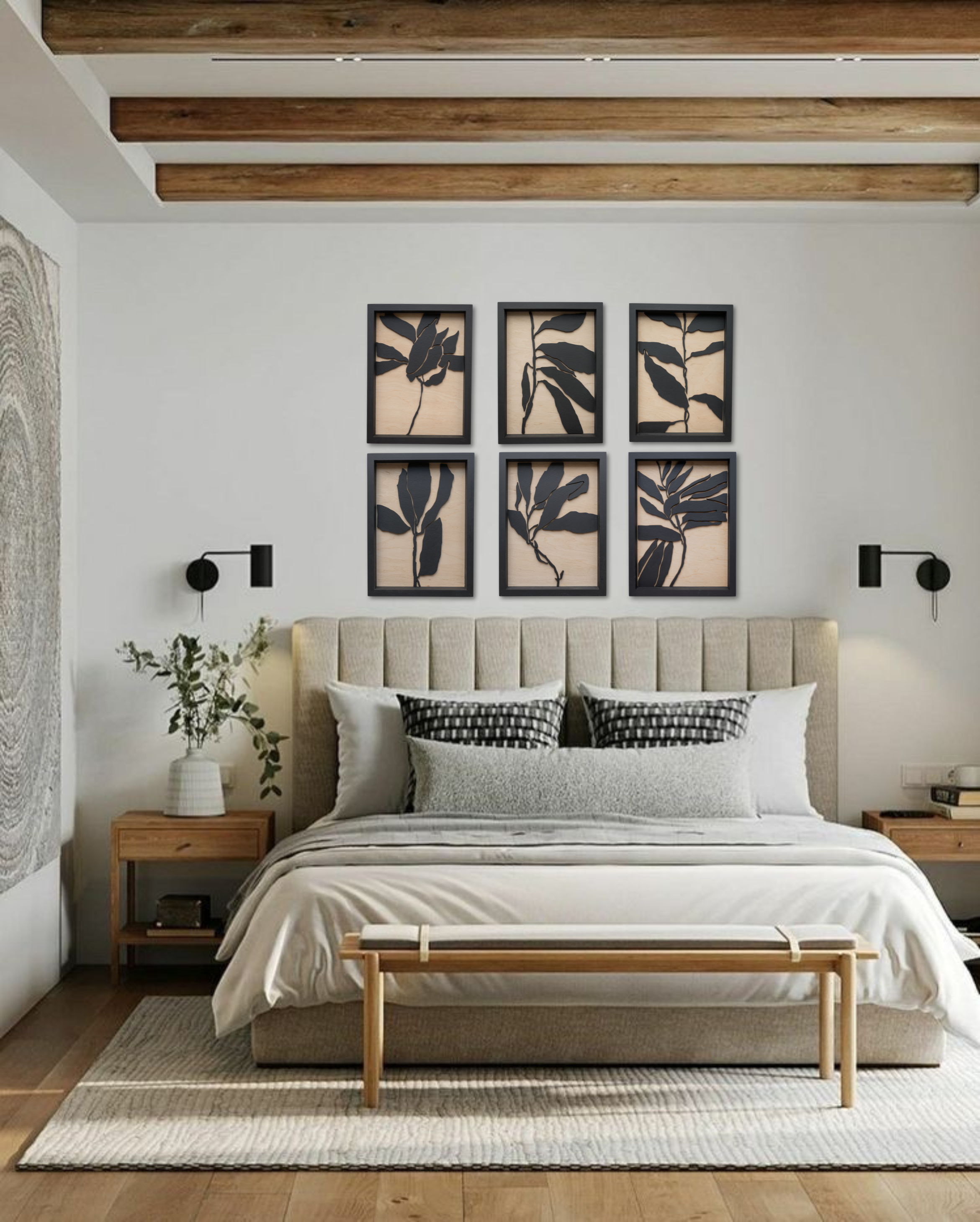 - Color: natural plywood background with acrylic black matte-painted leafes (customizable upon request)